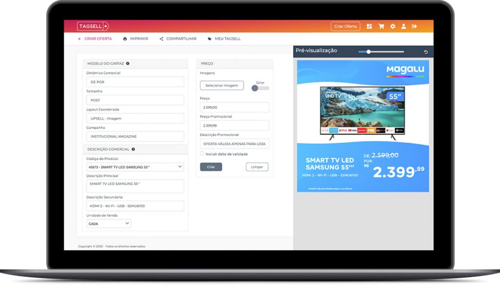 Intuitivo, simples e prático, dispensa a necessidade de treinamento para edição de ofertas. Plataforma em nuvem com 100% de segurança dos seus dados, controle total de usuários e impressão em todos os tipos de impressora.